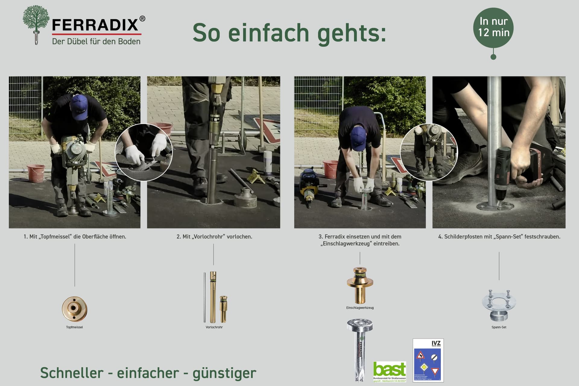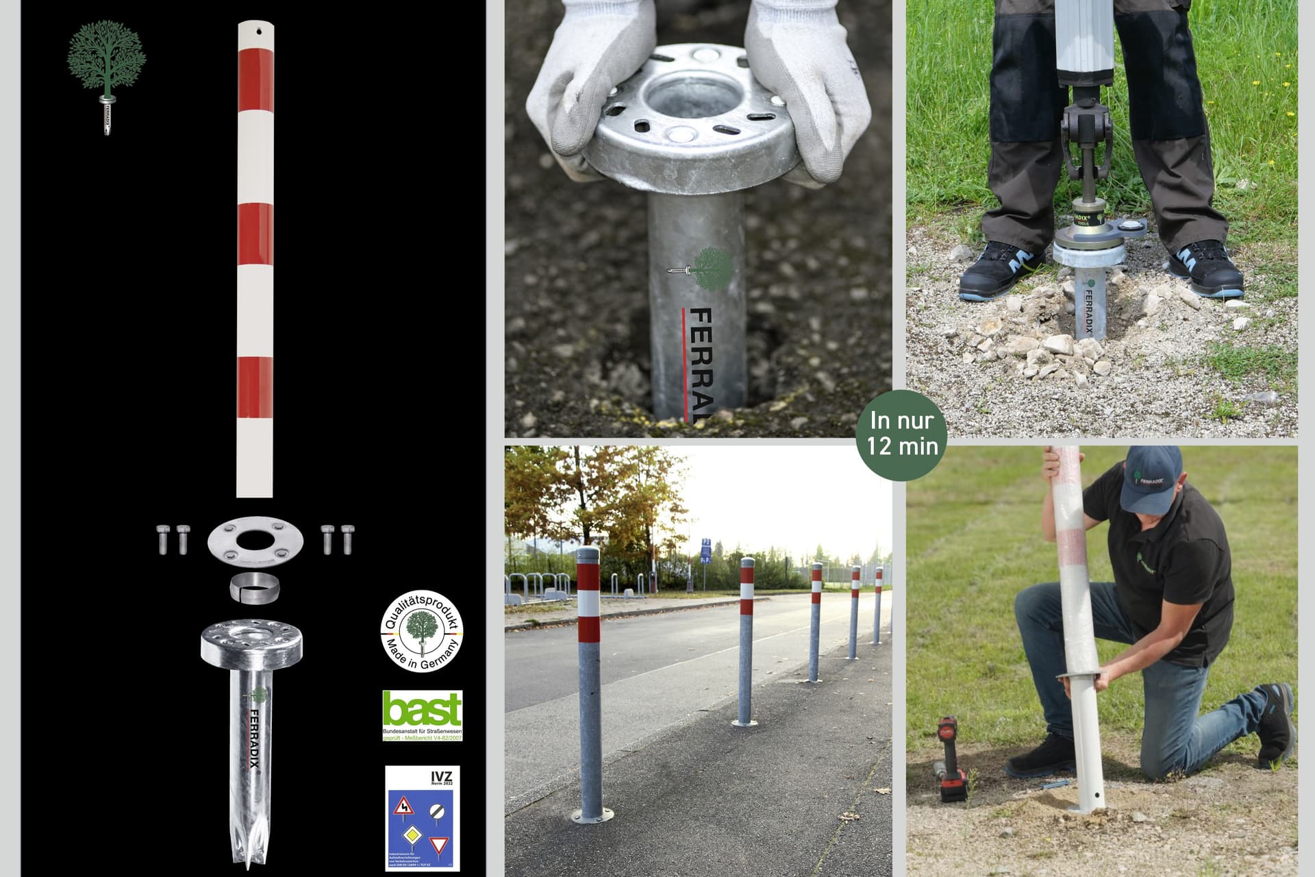 Die Bodenhülse FERRADIX® ist die effiziente Befestigung für Verkehrsschilder, Fahrradanlehnbügel, Absperrpfosten, Wallboxen, Abfalleimer, Baumschutzbügel, Außenleuchten, Parkbänke, Zäune, und vieles mehr.