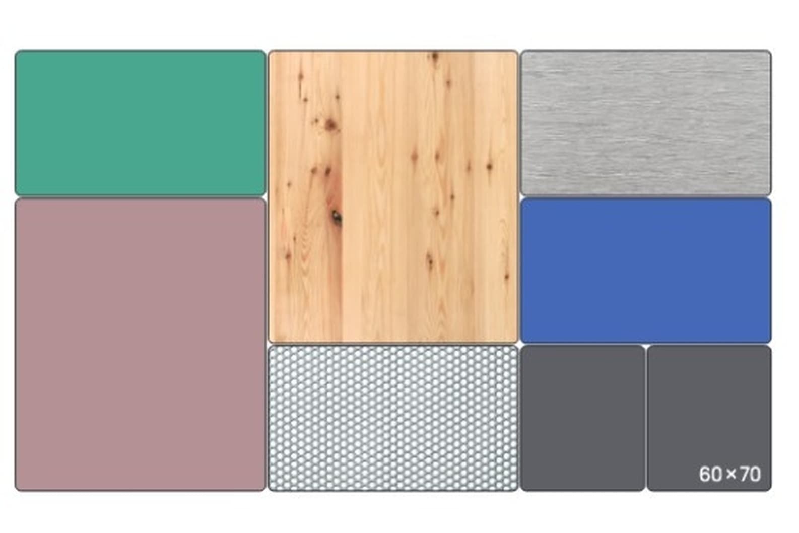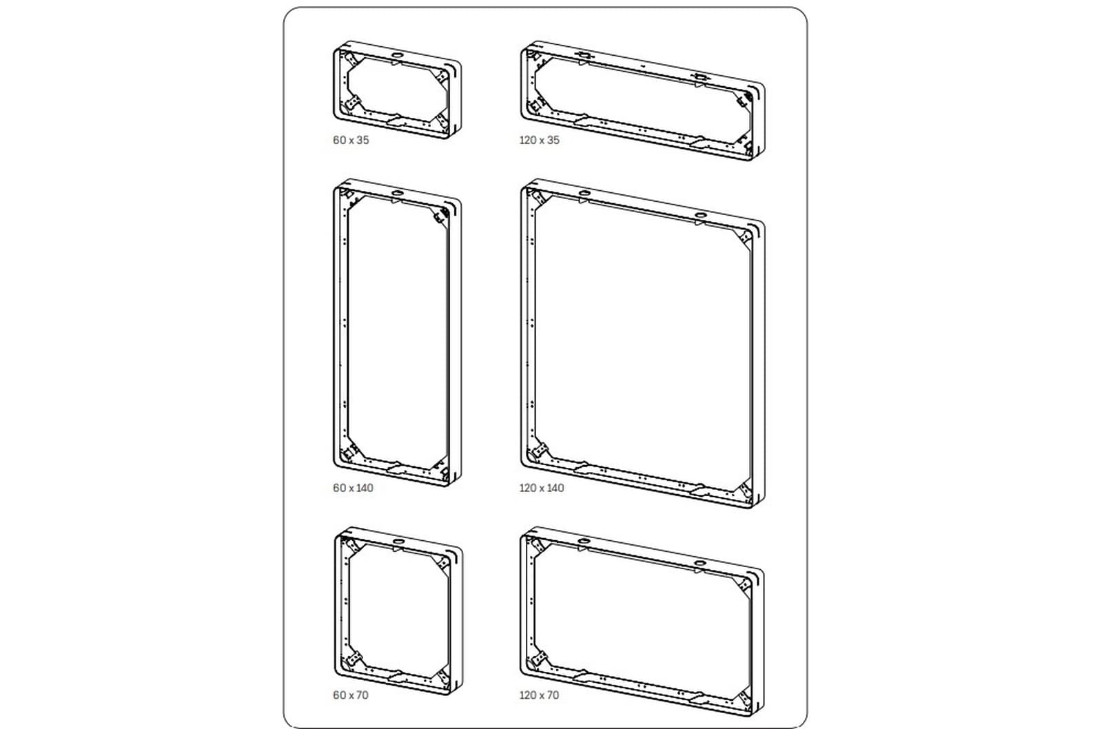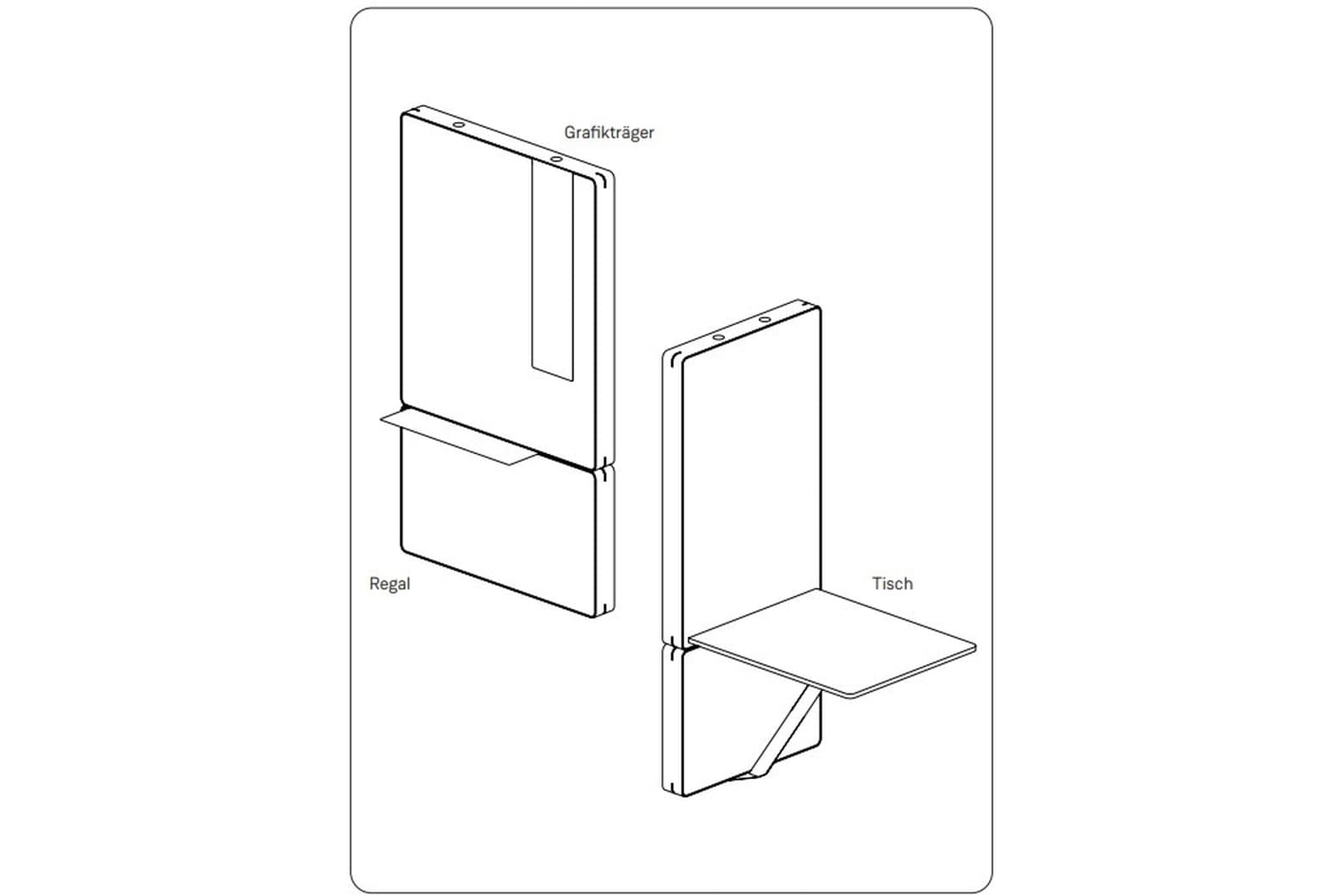 - Ausgehend vom Modulmaß 60 x 70 cm entsteht ein System, das sich frei kombinieren lässt.