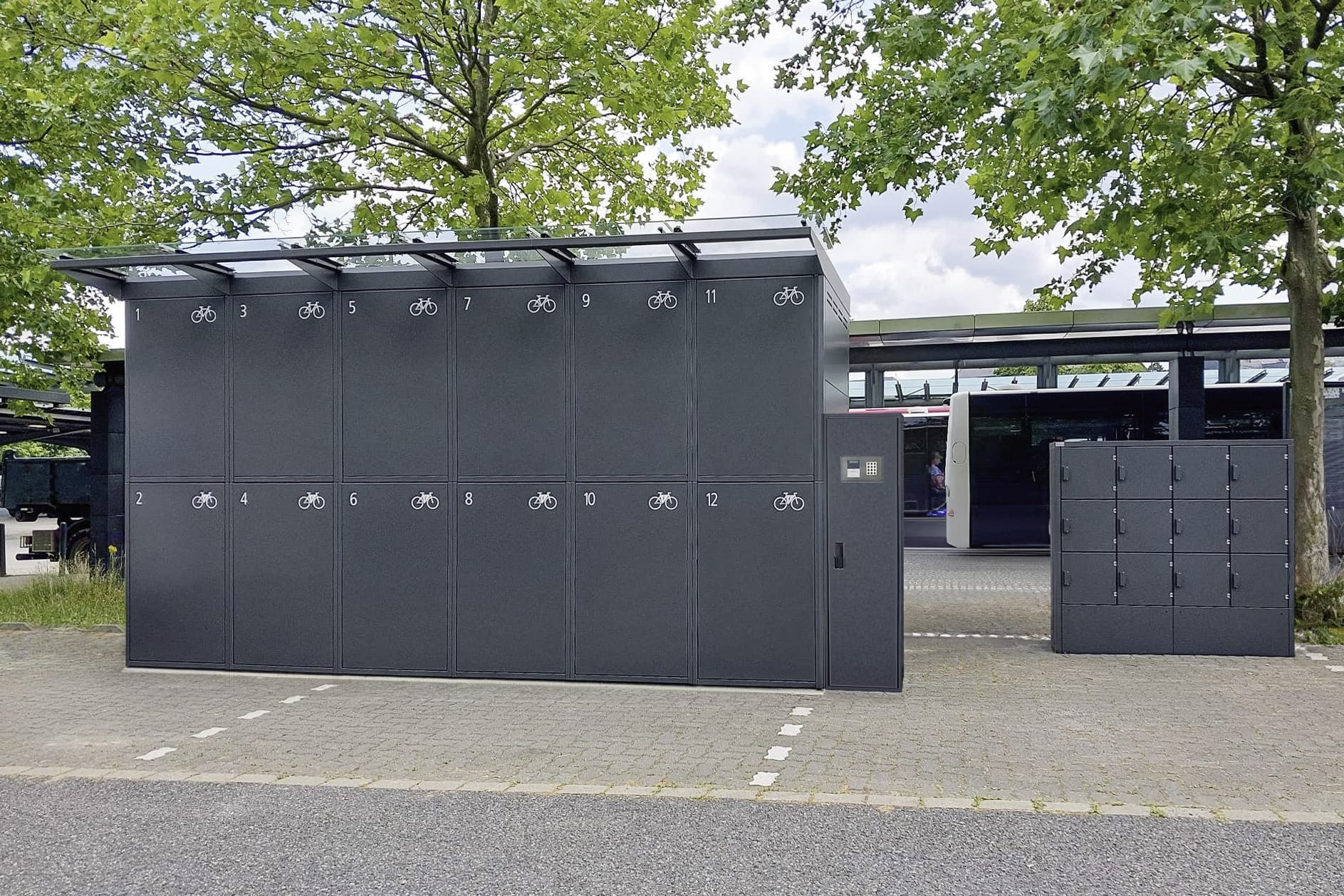 Die robuste Fahrradeinzelgarage ist in ein- oder zweistöckiger Ausführung erhältlich und durch den modularen Aufbau beliebig erweiterbar. Zahlreiche zusätzliche Ausstattungsmerkmale wie Lademöglichkeiten, USB-Anschlüsse und LED-Innenbeleuchtung sorgen für höchsten Komfort. Dank einer großen Farbauswahl und zahlreicher Gestaltungsmöglichkeiten fügt sich die hochwertige Fahrradbox harmonisch in je ...